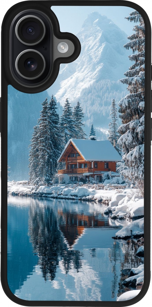 iPhone 17 Case Hülle - Silikon schwarz Winter 25 Winter house forest day