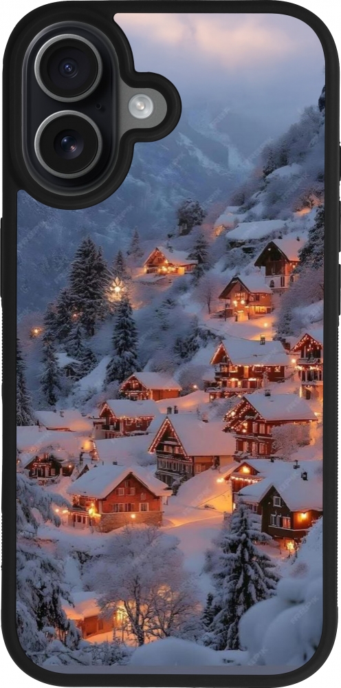 iPhone 17 Case Hülle - Silikon schwarz Winter 25 Winter snowy village