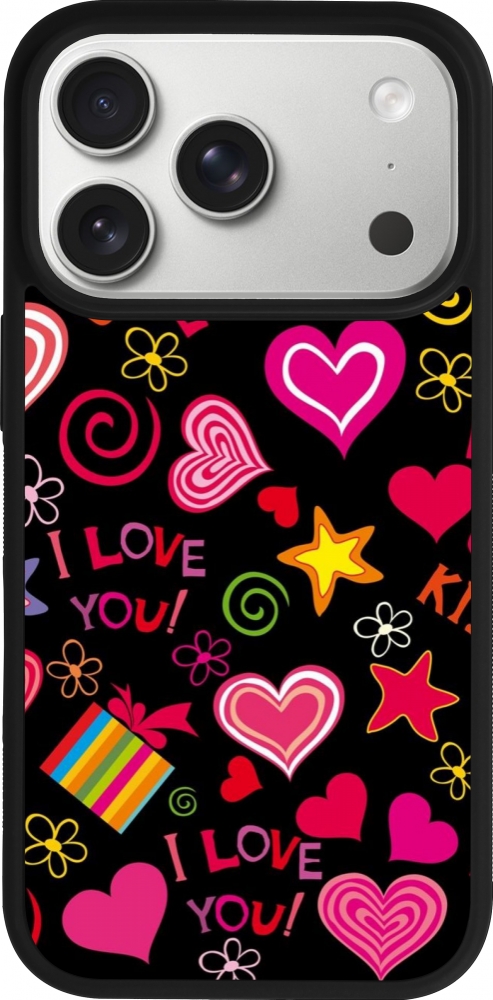iPhone 17 Pro Case Hülle - Silikon schwarz Valentine 2023 love symbols
