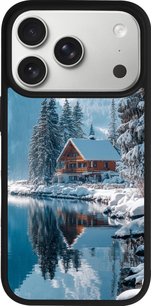 iPhone 17 Pro Case Hülle - Silikon schwarz Winter 25 Winter house forest day