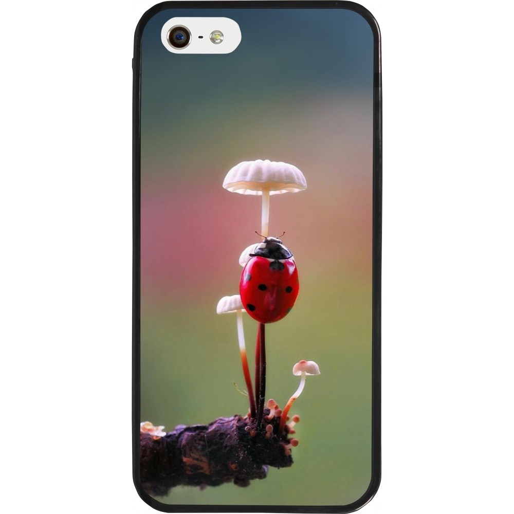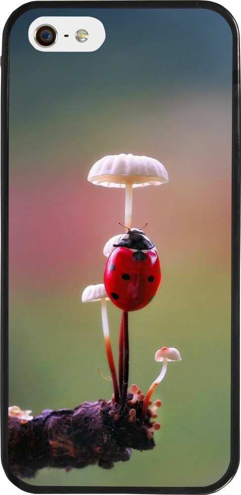 iPhone 5/5s / SE (2016) Case Hülle - Silikon schwarz Ladybird on a mushroom Spring 2026