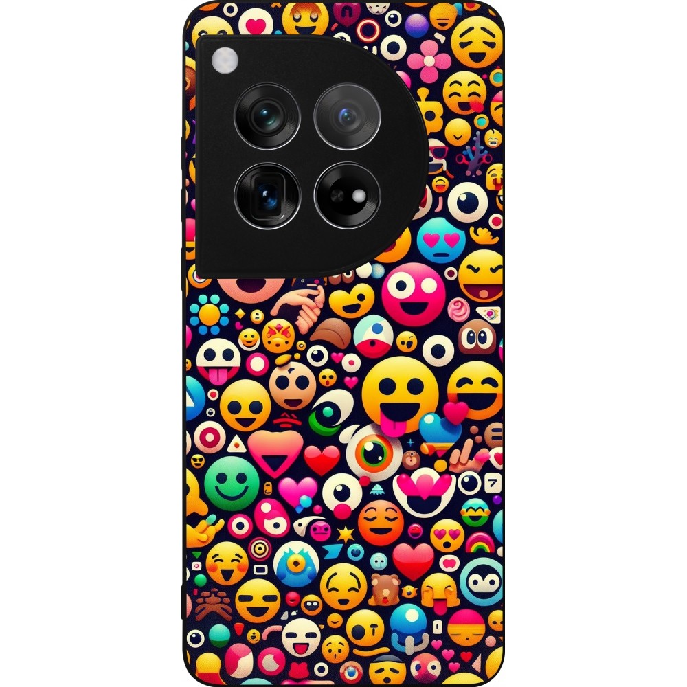 OnePlus 12 Case Hülle - Silikon schwarz Emoji Mix Farbe