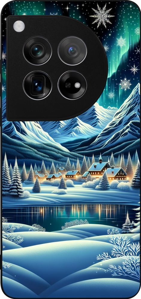 OnePlus 12 Case Hülle - Silikon schwarz Verschneites Bergdorf am See in der Nacht