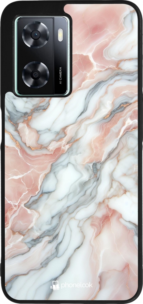OPPO A57 5G Case Hülle - Silikon schwarz Rosa Leuchtender Marmor