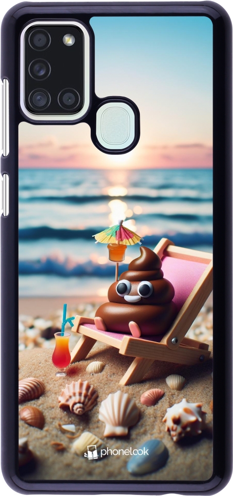 Samsung Galaxy A21s Case Hülle - Kackhaufen Emoji auf Liegestuhl