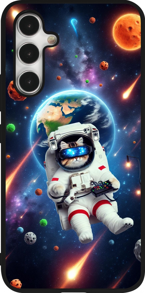 Samsung Galaxy A54 Case Hülle - Silikon schwarz VR SpaceCat Odyssee