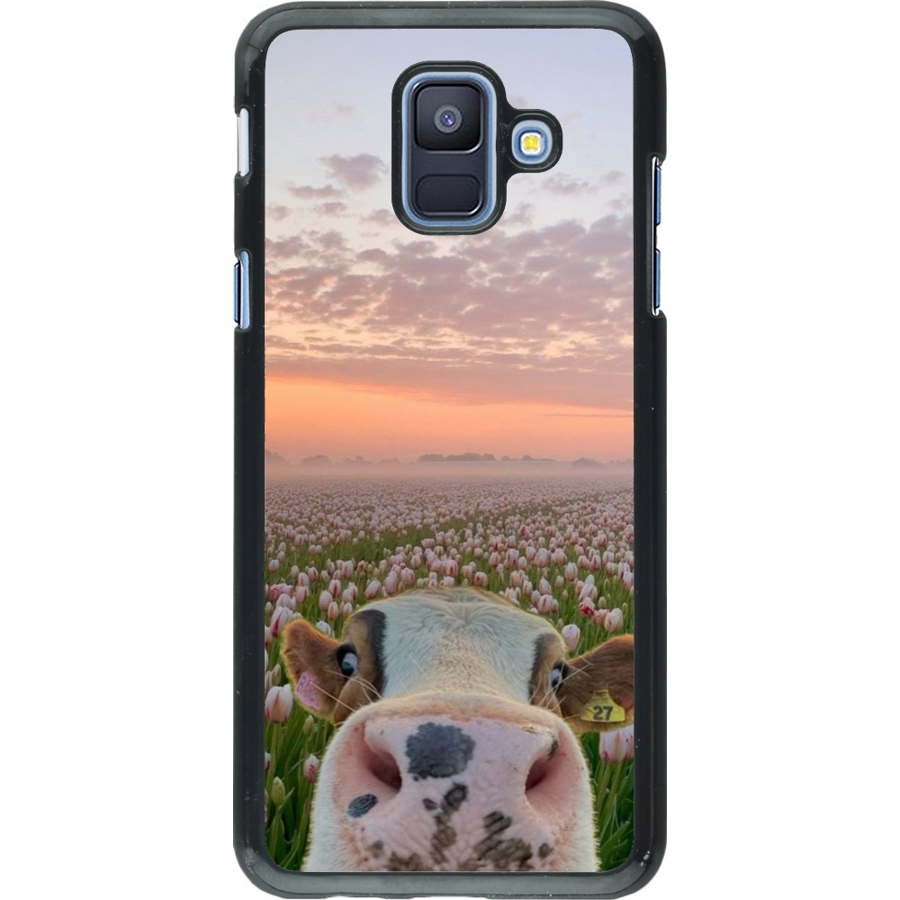 Samsung Galaxy A6 Case Hülle - Cow with tulips Spring 2026