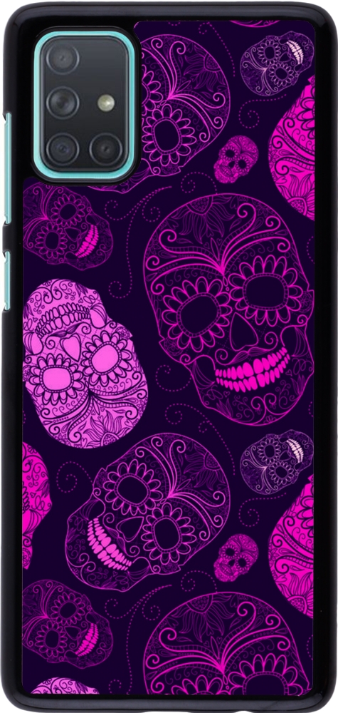 Samsung Galaxy A71 Case Hülle - Halloween 2023 pink skulls
