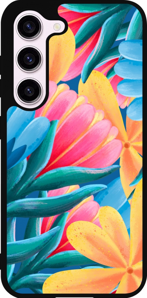 Samsung Galaxy S23 Case Hülle - Silikon schwarz Spring 23 colorful flowers