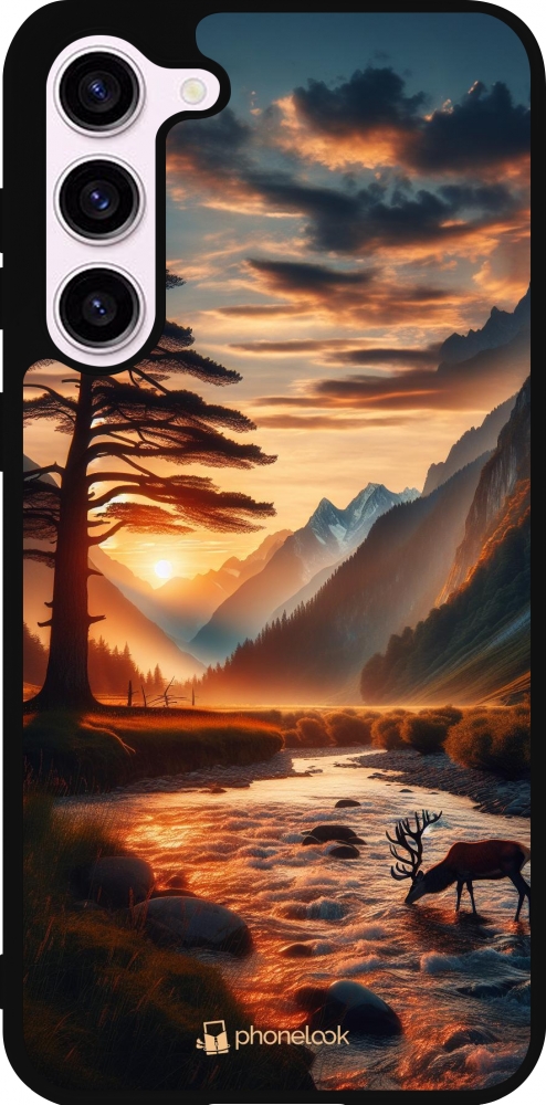 Samsung Galaxy S23+ Case Hülle - Silikon schwarz Tal Sonnenuntergang Hirsch Baum