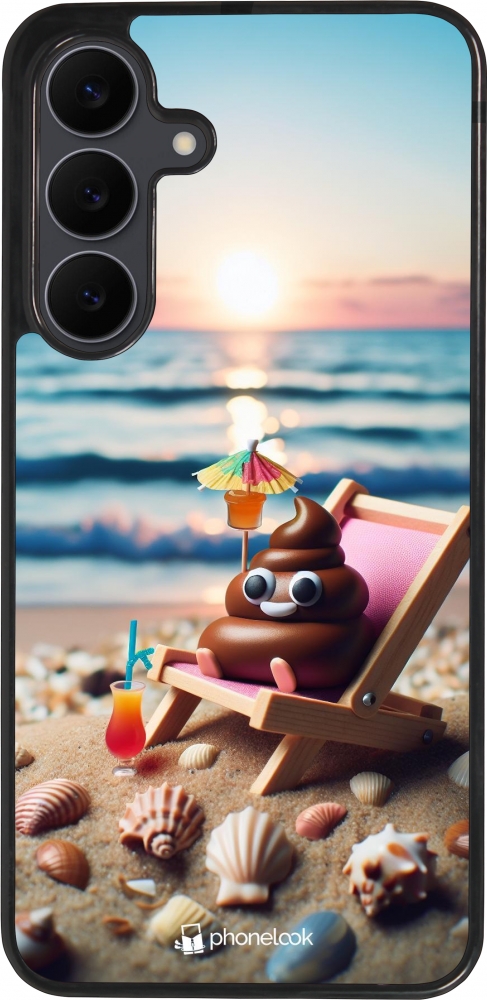 Samsung Galaxy S25 FE Case Hülle - Silikon schwarz Kackhaufen Emoji auf Liegestuhl