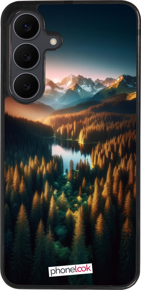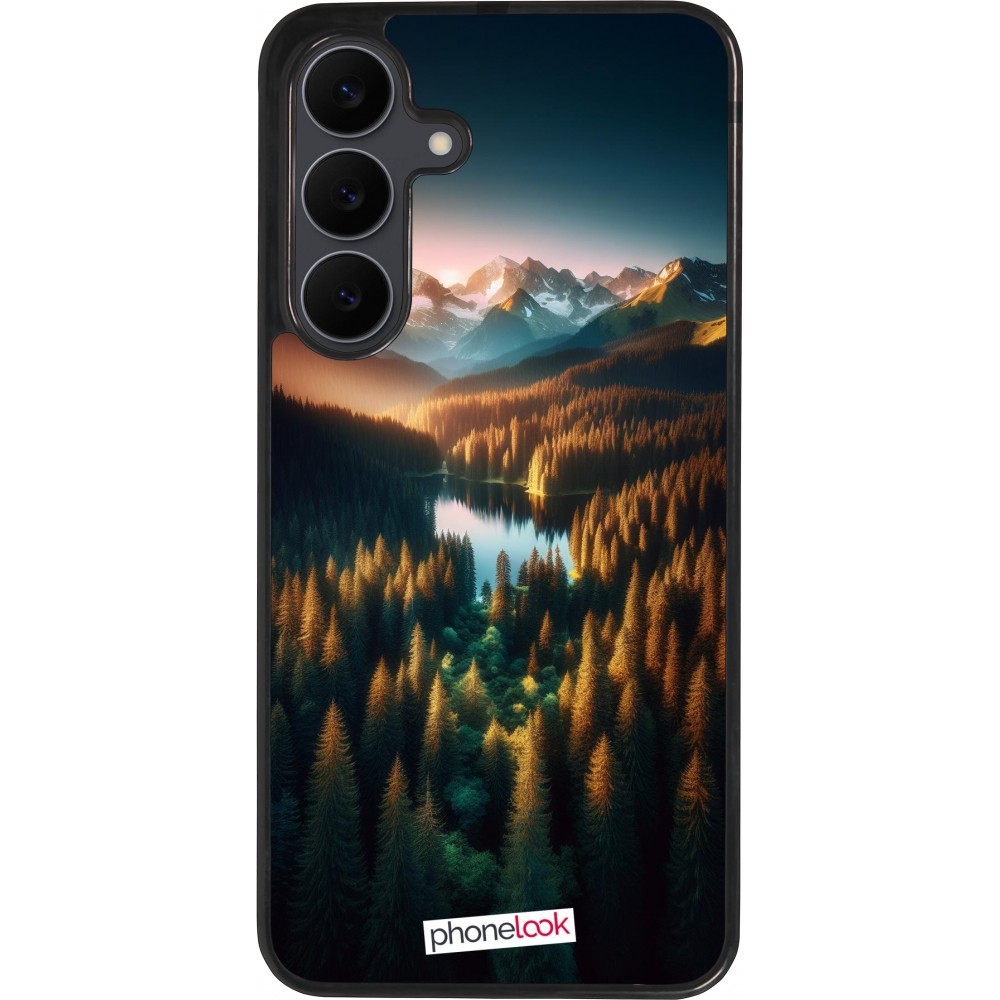 Samsung Galaxy S25 FE Case Hülle - Silikon schwarz Sonnenuntergang Waldsee