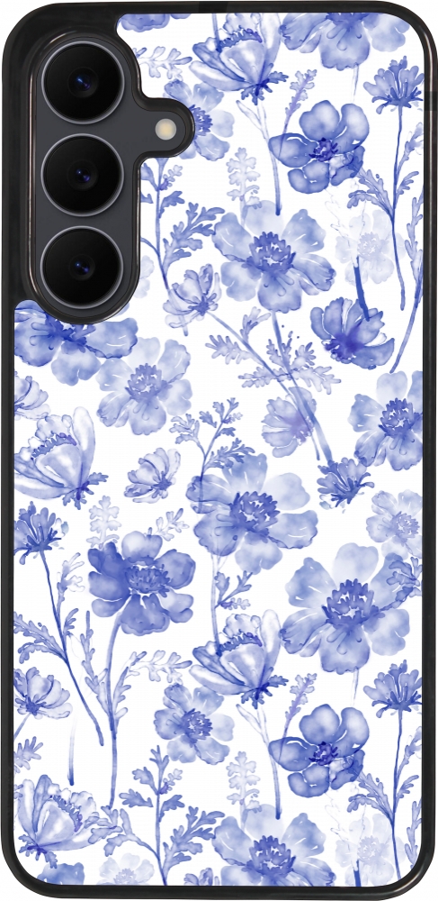 Samsung Galaxy S25 FE Case Hülle - Silikon schwarz Spring 23 watercolor blue flowers