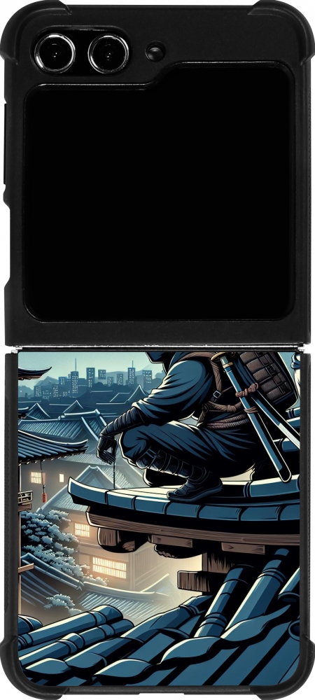 Samsung Galaxy Z Flip5 Case Hülle - Silikon schwarz Ninja unter dem Mond