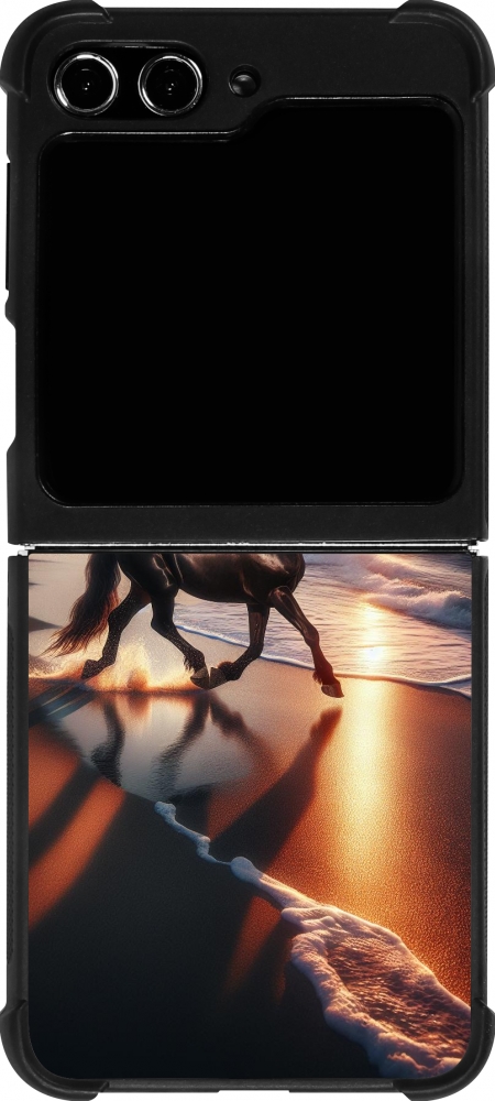 Samsung Galaxy Z Flip5 Case Hülle - Silikon schwarz Pferd majestätisch Strand