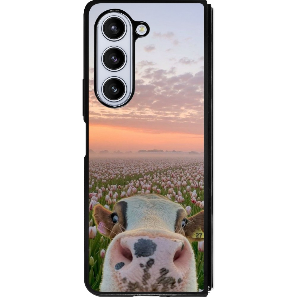 Samsung Galaxy Z Fold5 Case Hülle - Silikon schwarz Cow with tulips Spring 2026