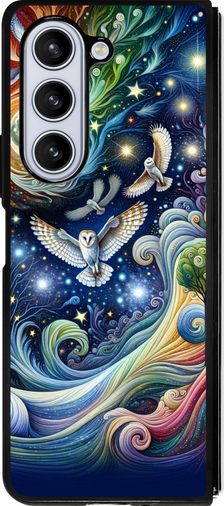 Samsung Galaxy Z Fold5 Case Hülle - Silikon schwarz Fliegender Blumen-Eule