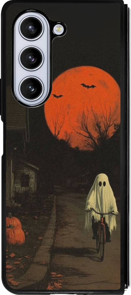 Samsung Galaxy Z Fold5 Case Hülle - Silikon schwarz Halloween 2025 Ghost on a bicycle