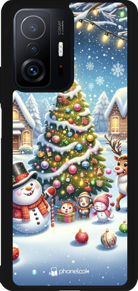 Xiaomi 11T Case Hülle - Silikon schwarz Weihnachten 2023 Schneemann und Tannenbaum