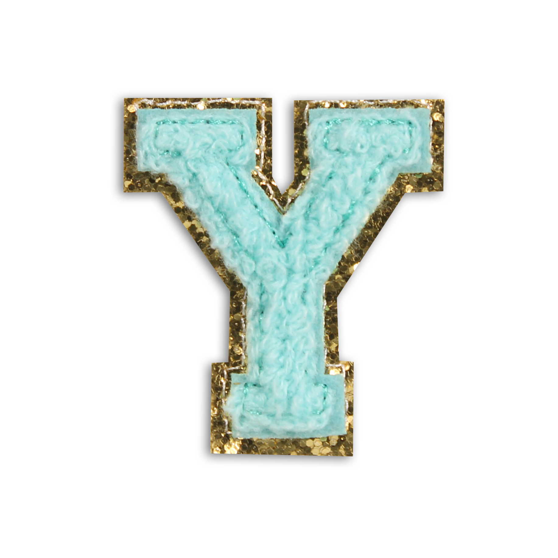 Autocollant sticker pour téléphone/tablette/ordinateur brodé en 3D turquoise - Lettre Y