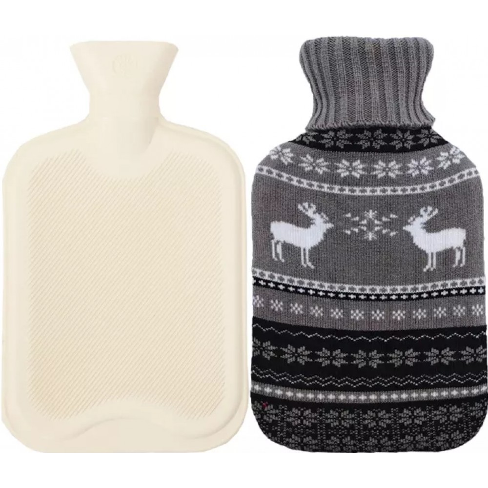 Bouillotte avec couverture en tricot (2 litres) - Cerfs gris