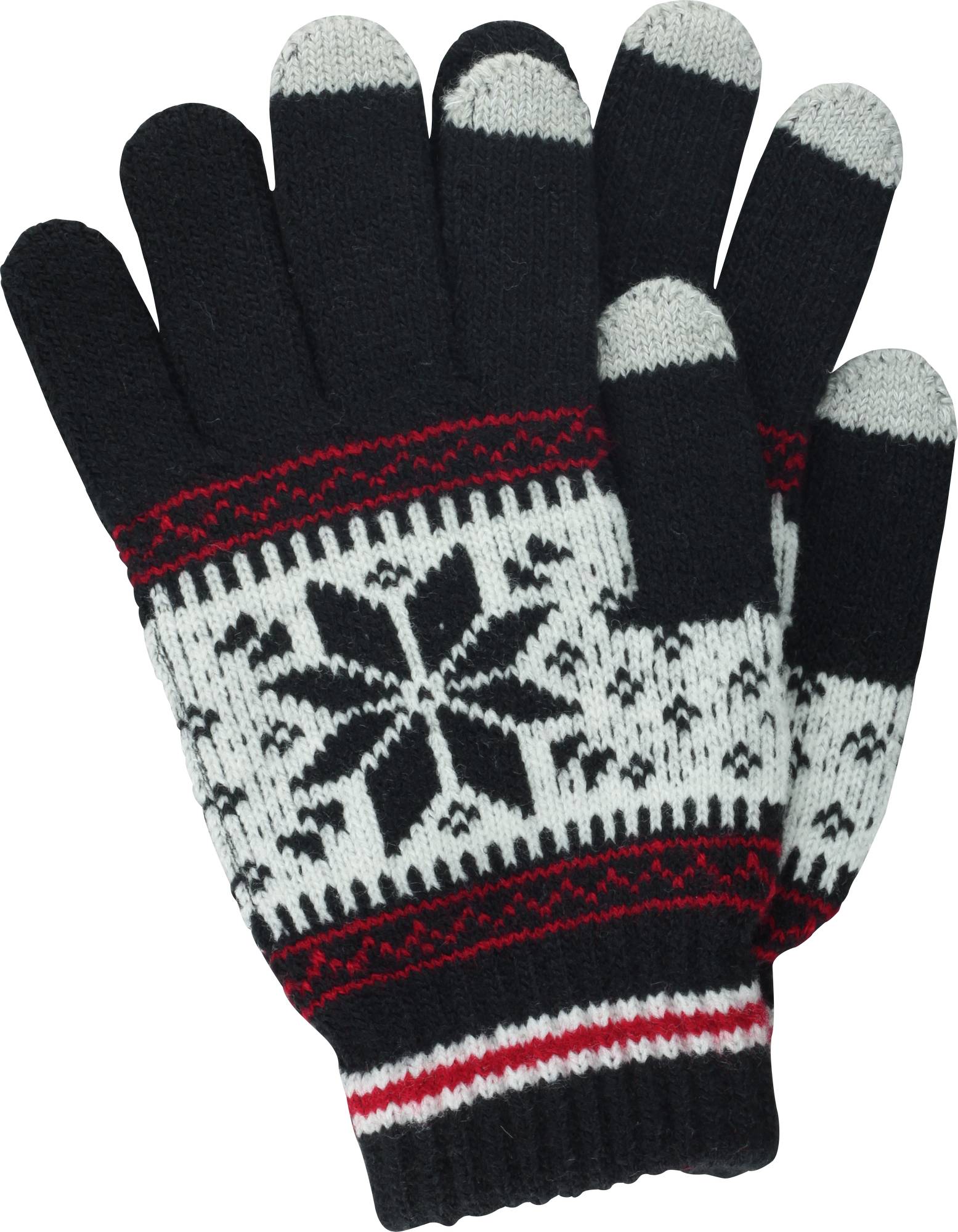 Gants tactiles d'hiver en tricot "Snowflake" avec compatibilité avec les écrans de smartphones et tablettes - Noir