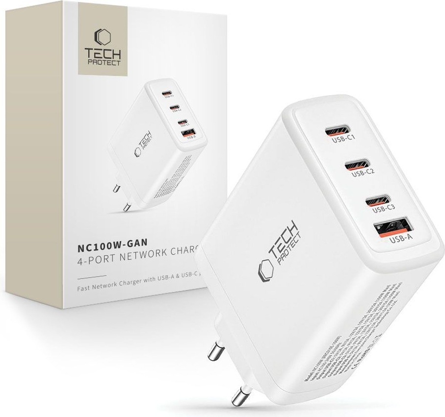 Le chargeur réseau à 4 ports de Tech-Protect est un appareil moderne qui permet de charger rapidement et efficacement plusieurs dispositifs simultanément. Équipé de trois ports USB-C et d'un port USB-A, il utilise la technologie GaN (nitrure de gallium) pour offrir une efficacité supérieure, un design compact et une sécurité accrue par rapport aux chargeurs traditionnels. Avec une puissance de 100W, ce chargeur est idéal pour recharger rapidement la plupart des appareils mobiles tels que les smartphones, tablettes et ordinateurs portables.