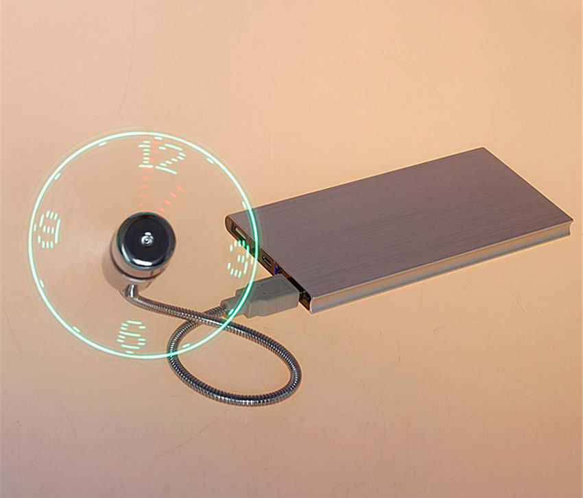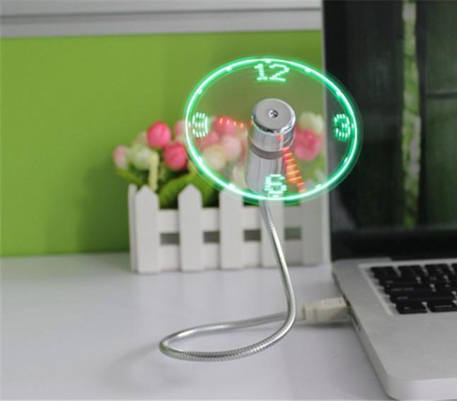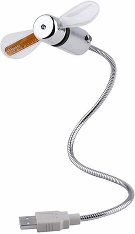 Petit ventilateur élégant et robuste avec bras flexible. Grâce à son port USB, le ventilateur peut être connecté presque partout et à presque tous les appareils. Il est ensuite alimenté par la connexion USB. Les lumières LED dans les lames créent une horloge avec les heures, les minutes et même les secondes. Ainsi, le ventilateur crée non seulement une brise rafraîchissante pendant les journées chaudes, mais il vous indique également l'heure exacte. En plus, il attire sûrement tous les regards au bureau.