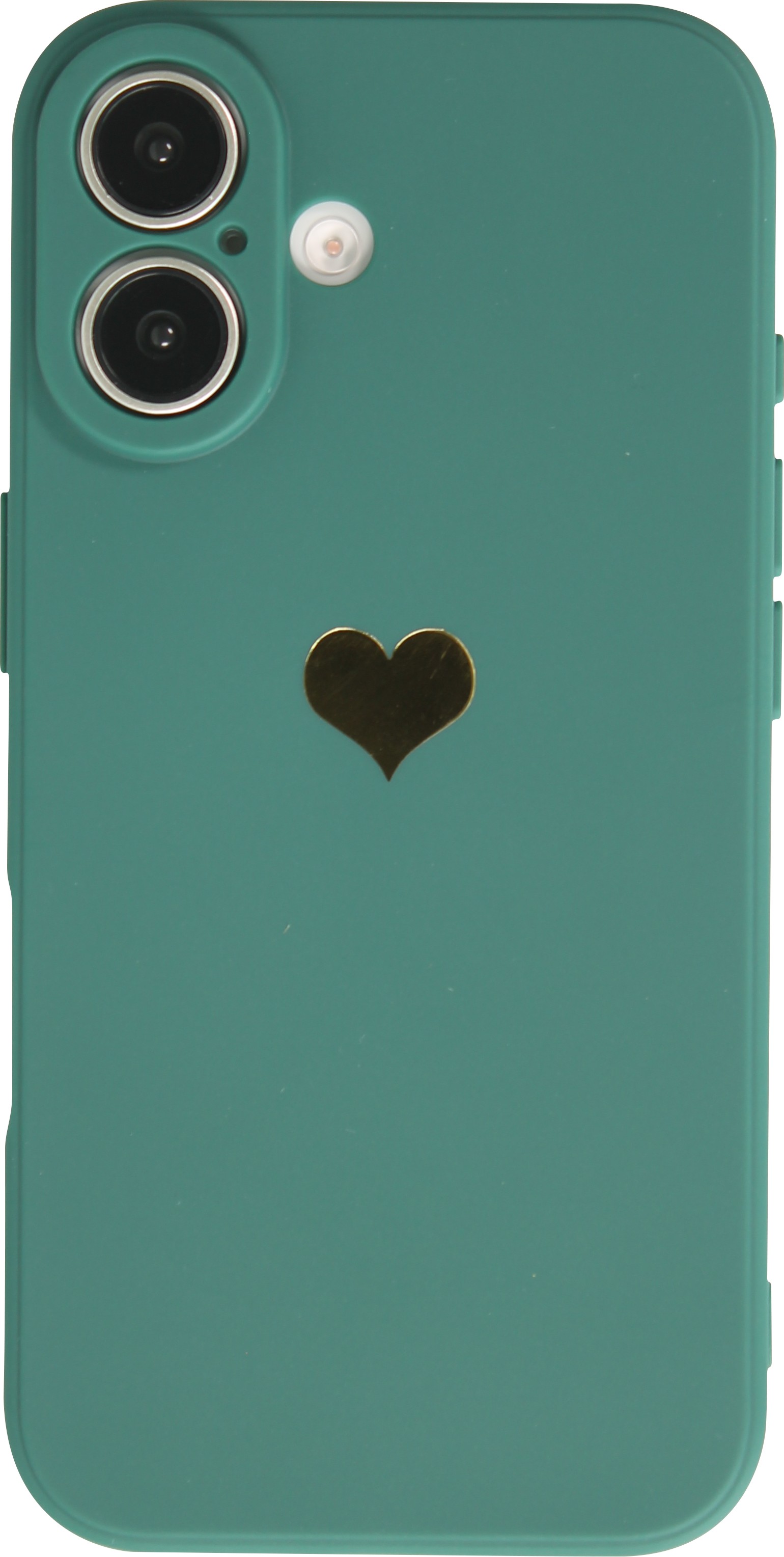 Une coque de protection en silicone simple mais efficace pour le iPhone 16 Plus avec un cœur doré au dos. Elle protège le smartphone des rayures et autres dommages. L'étui offre en outre une protection supplémentaire pour le boîtier de l'appareil photo.