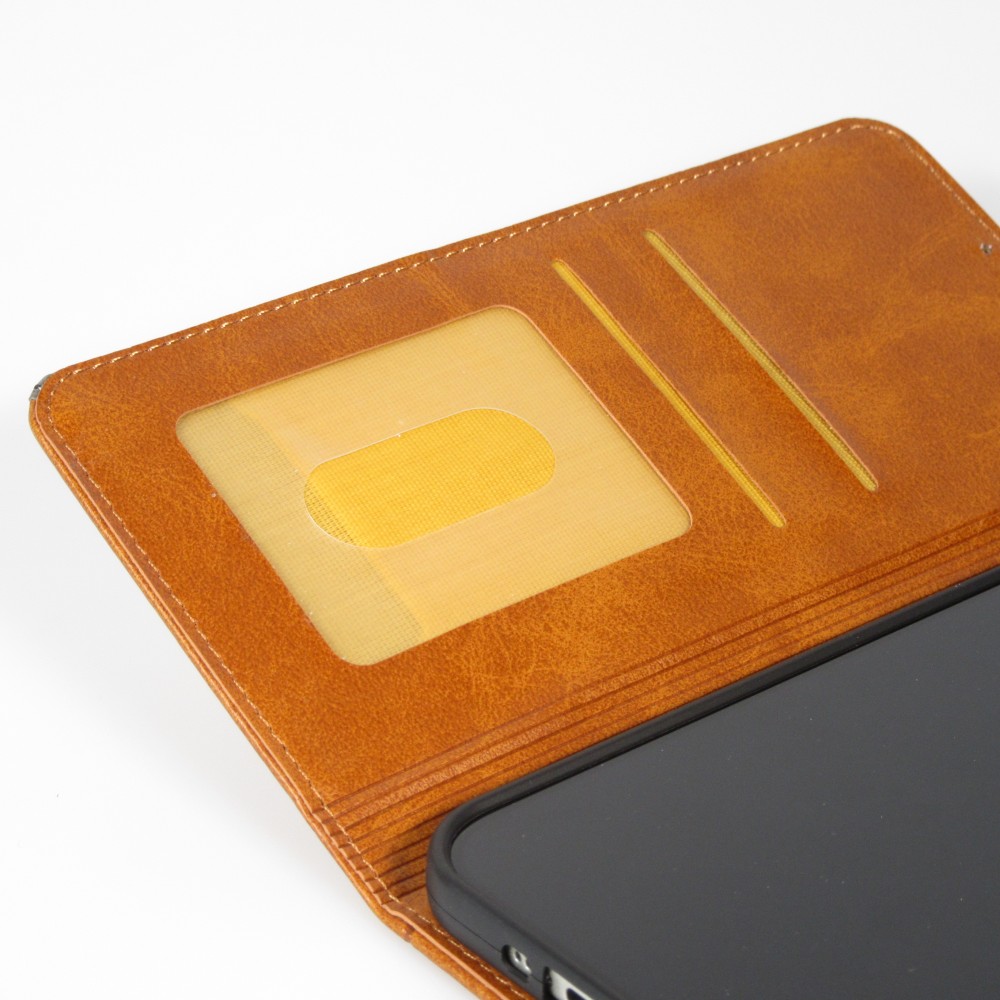La belle finition du similicuir donne à l'étui un aspect noble qui convainc également lorsqu'on le regarde de près.