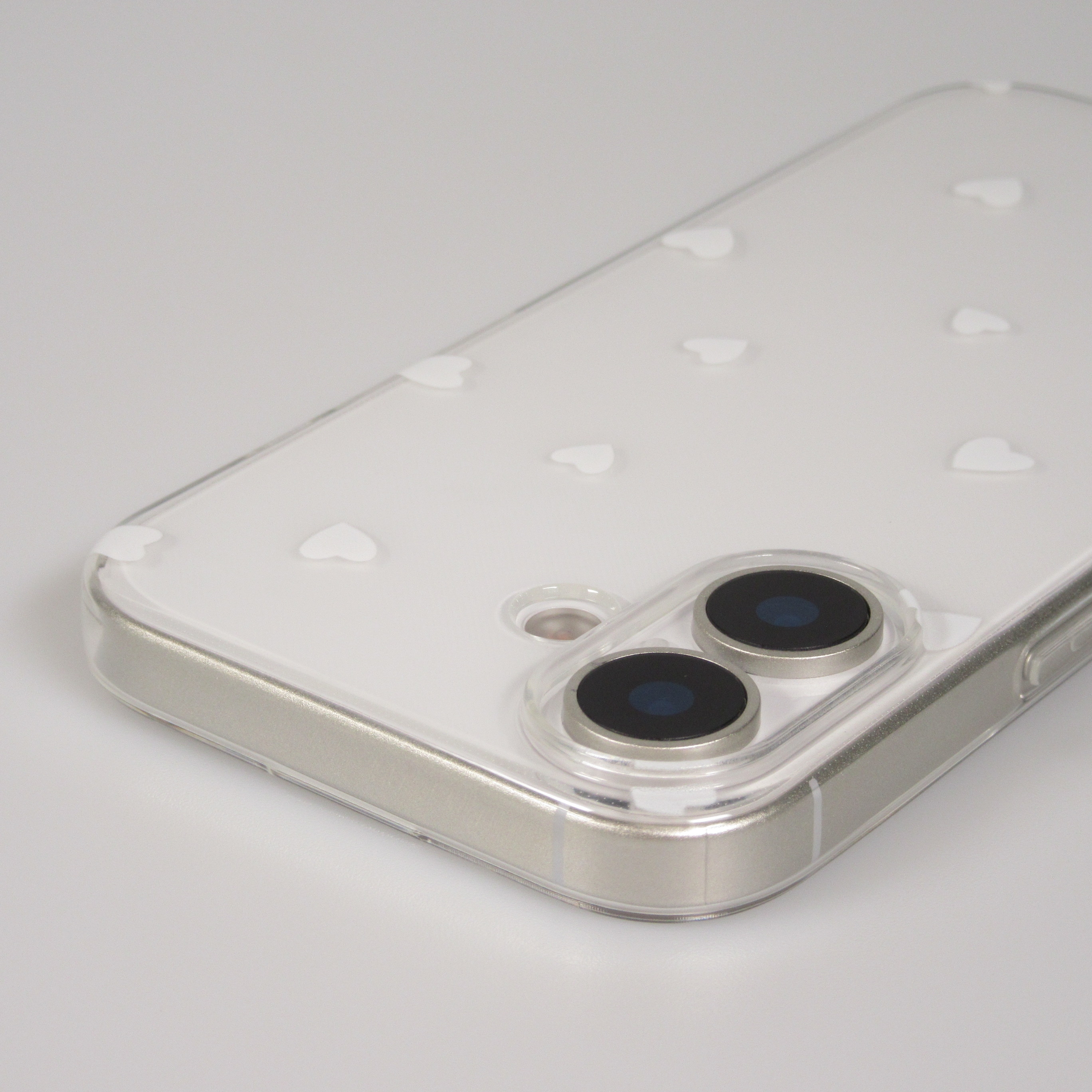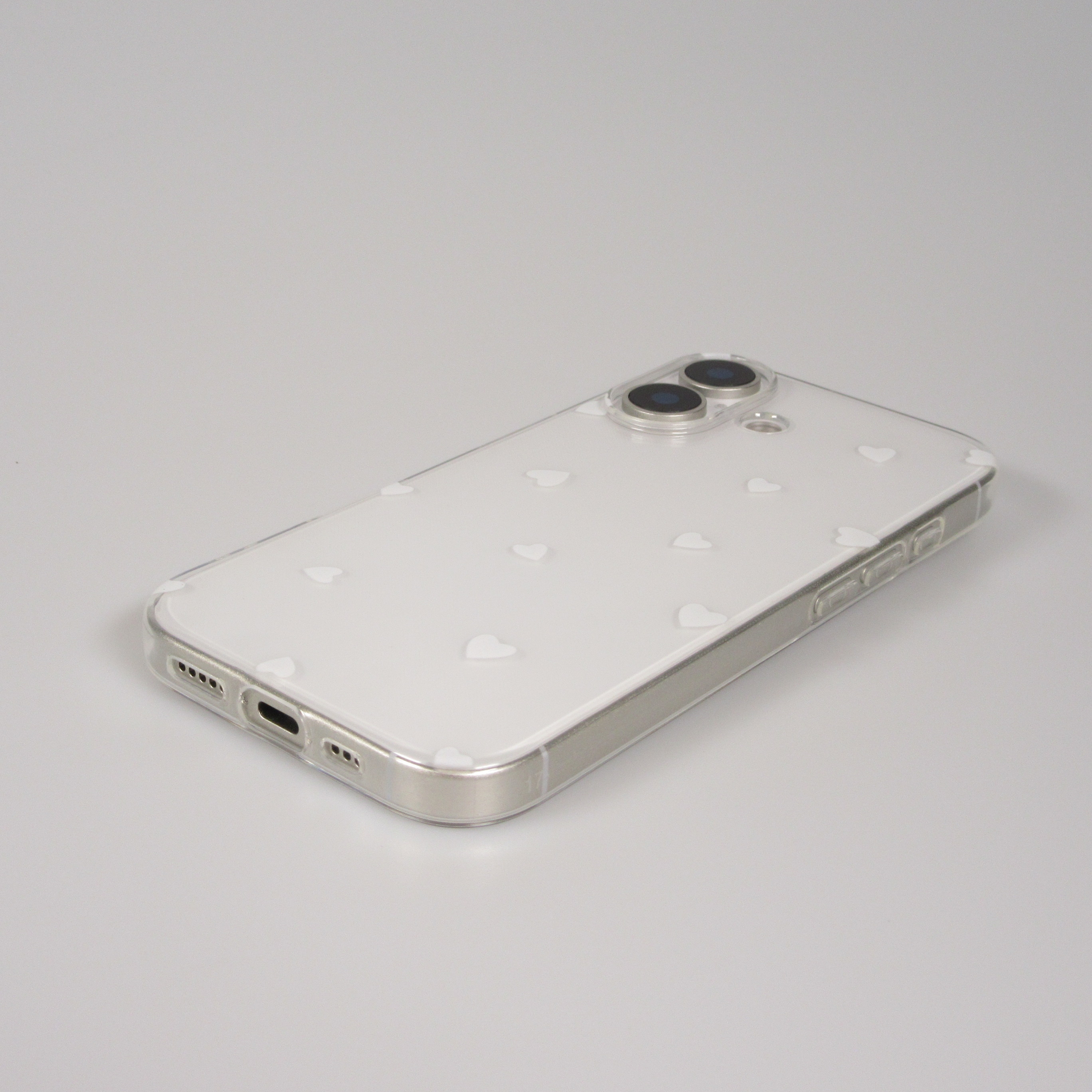 Coque très populaire en gel transparent avec des petits cœurs. Elle protège discrètement le smartphone contre les rayures et les chutes et lui donne une touche de charme.