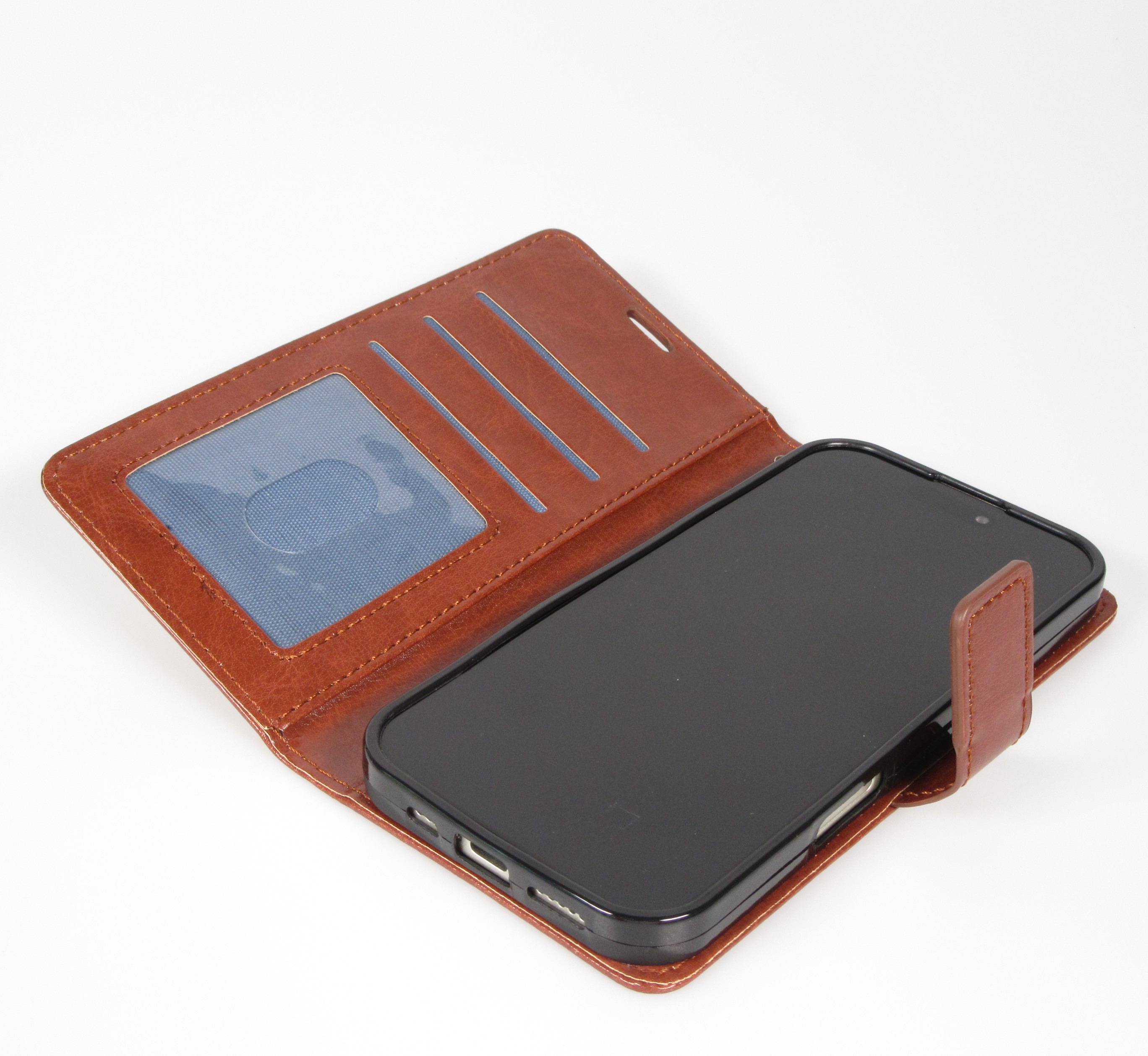 À l'intérieur, vous trouverez 3 compartiments pour cartes, celui du bas étant doté d'une fenêtre. Il est donc idéal pour les cartes d'identité. La finition haut de gamme en similicuir confère à votre smartphone un look haut de gamme de qualité et de la classe. De plus, cette housse est disponible pour presque tous les modèles et dans de nombreuses couleurs.