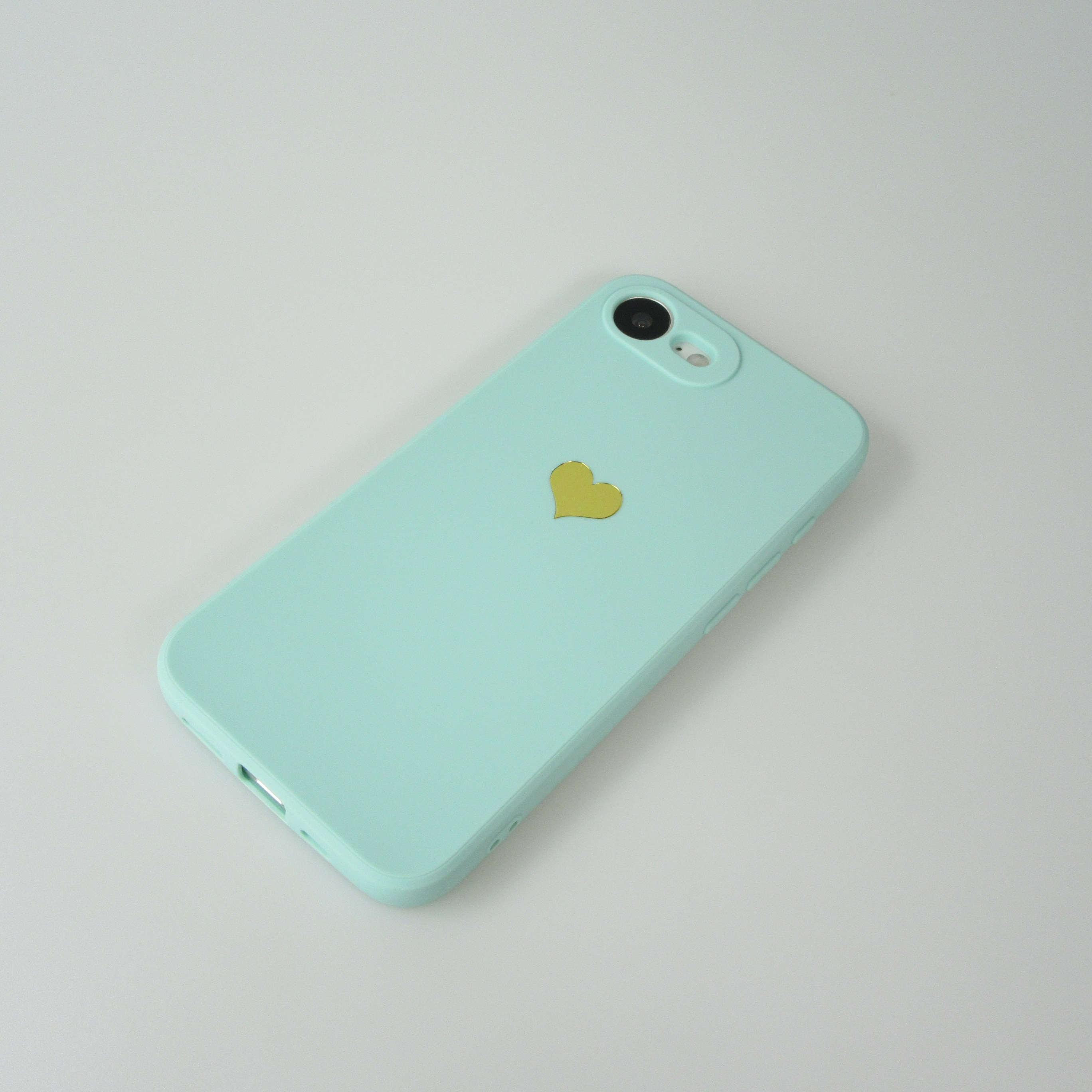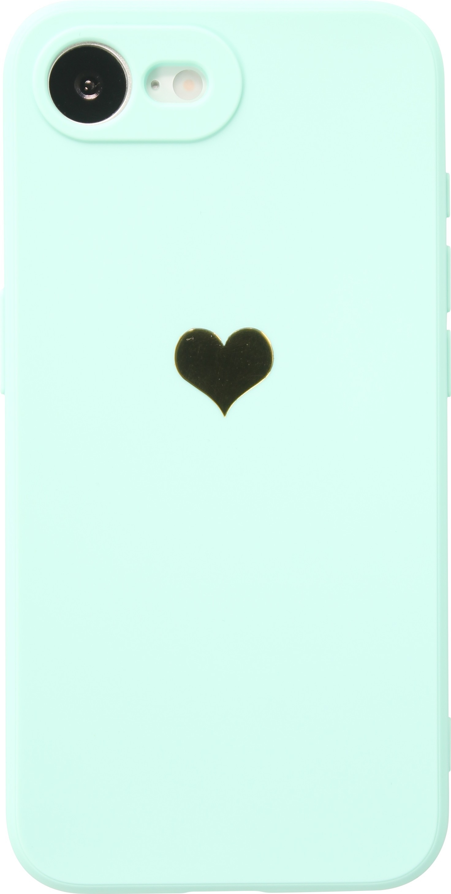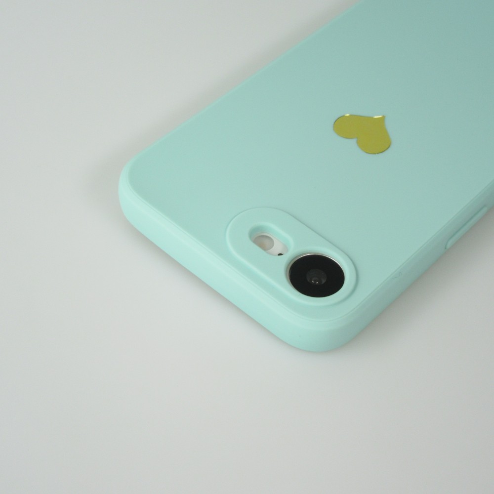 Coque iPhone 17e / 16e - Silicone Mat Coeur doré - Turquoise