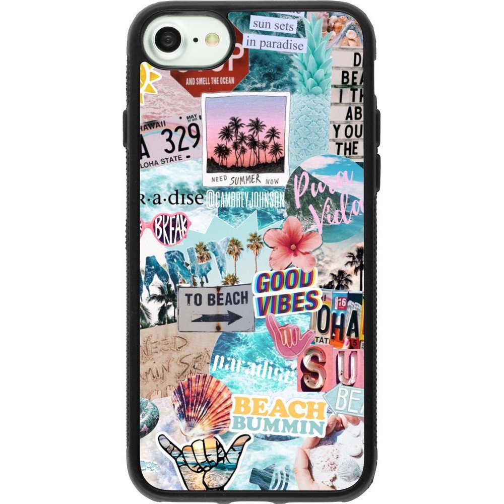 Coque iPhone 7 / 8 / SE (2020, 2022) - Silicone rigide noir Summer 20 collage