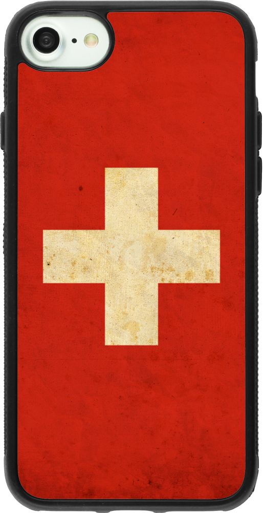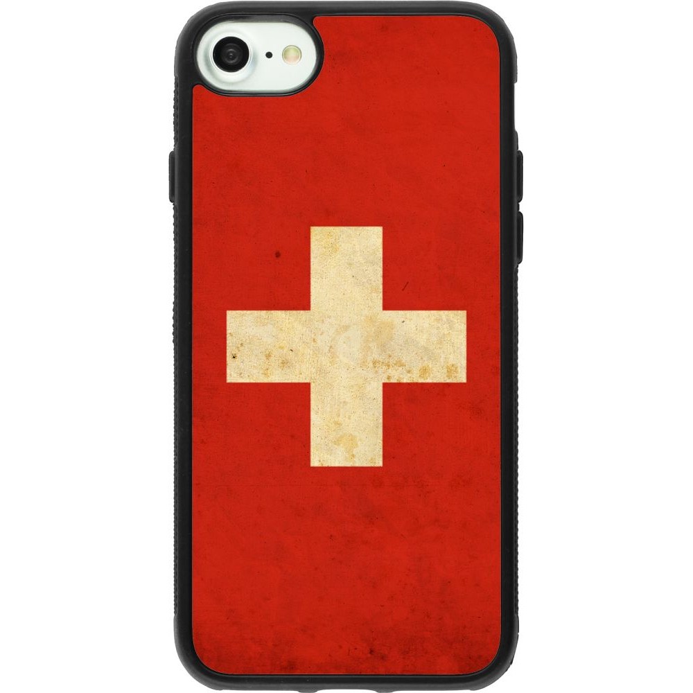 Coque iPhone 7 / 8 / SE (2020, 2022) - Silicone rigide noir Vintage Flag SWISS