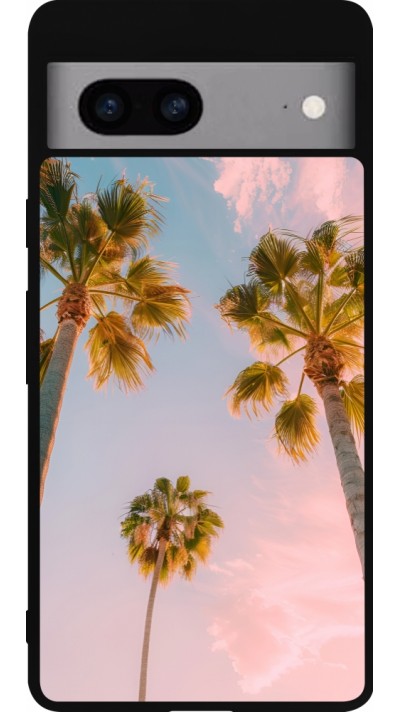 Coque Google Pixel 7a - Silicone rigide noir Christmas 25 Pink Tree