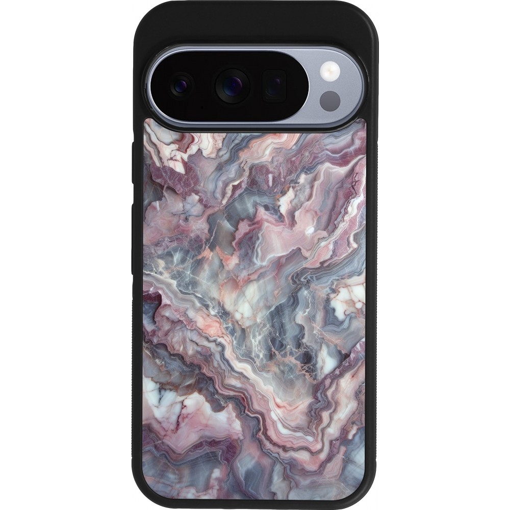Coque Google Pixel 10 / Pixel 10 Pro - Silicone rigide noir Marbre violette argentée