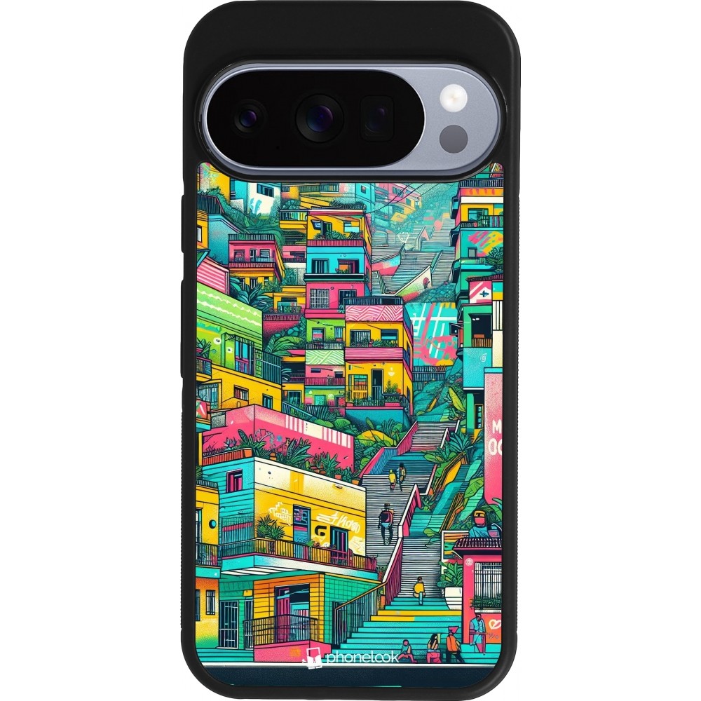 Coque Google Pixel 10 / Pixel 10 Pro - Silicone rigide noir Medellin Comuna 13 Art