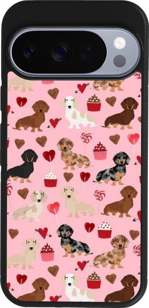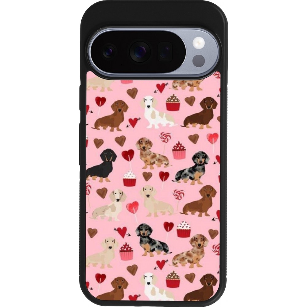 Coque Google Pixel 10 / Pixel 10 Pro - Silicone rigide noir Valentine 2024 puppy love