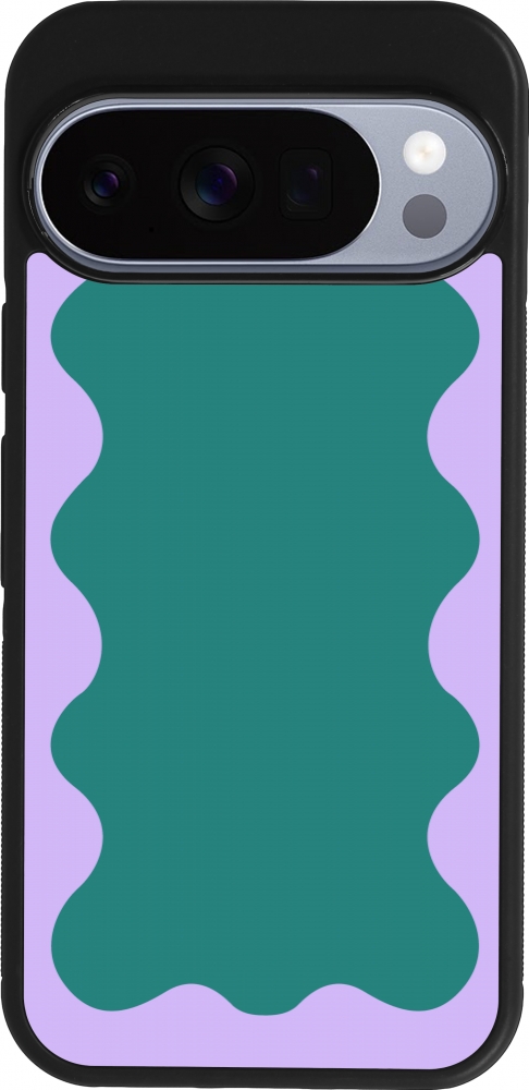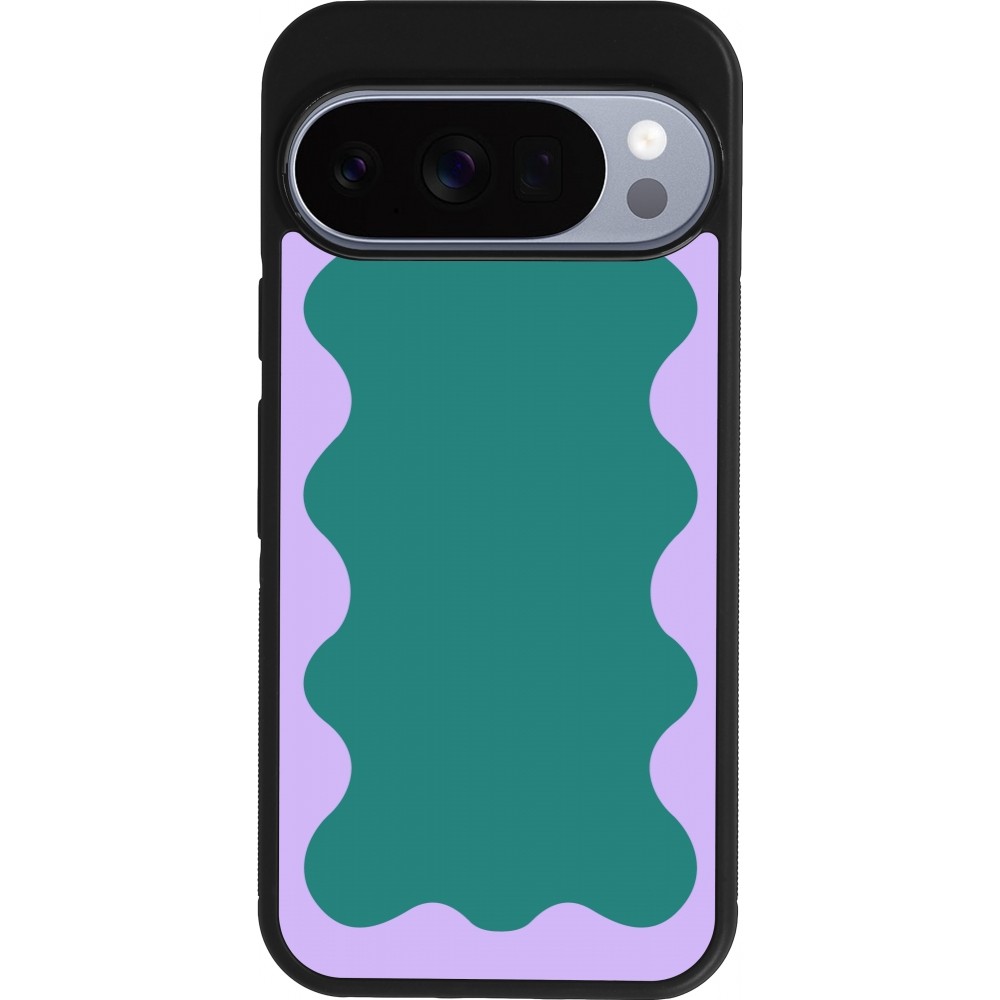 Coque Google Pixel 10 / Pixel 10 Pro - Silicone rigide noir Wavy Rectangle Green Purple