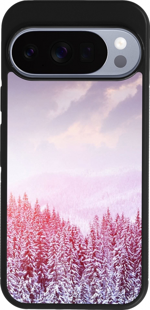 Coque Google Pixel 10 / Pixel 10 Pro - Silicone rigide noir Winter 22 Pink Forest