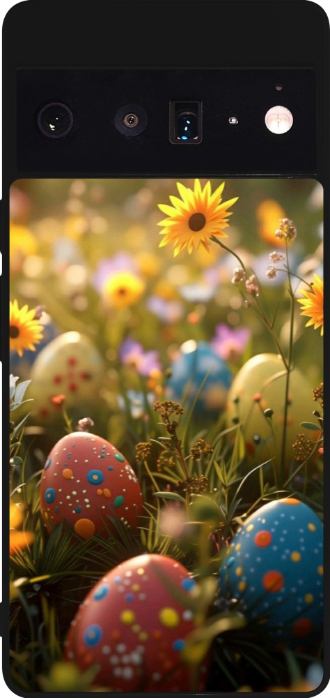 Coque Google Pixel 6 Pro - Silicone rigide noir Easter 2026 Decorated eggs