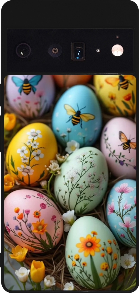 Coque Google Pixel 6 Pro - Silicone rigide noir Easter 2026 Eggs with bees