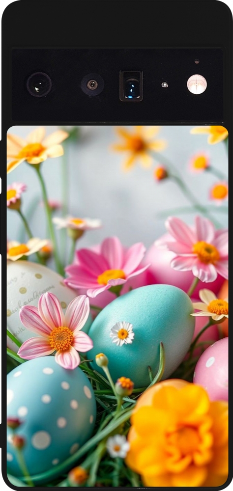 Coque Google Pixel 6 Pro - Silicone rigide noir Easter 2026 Eggs with flowers