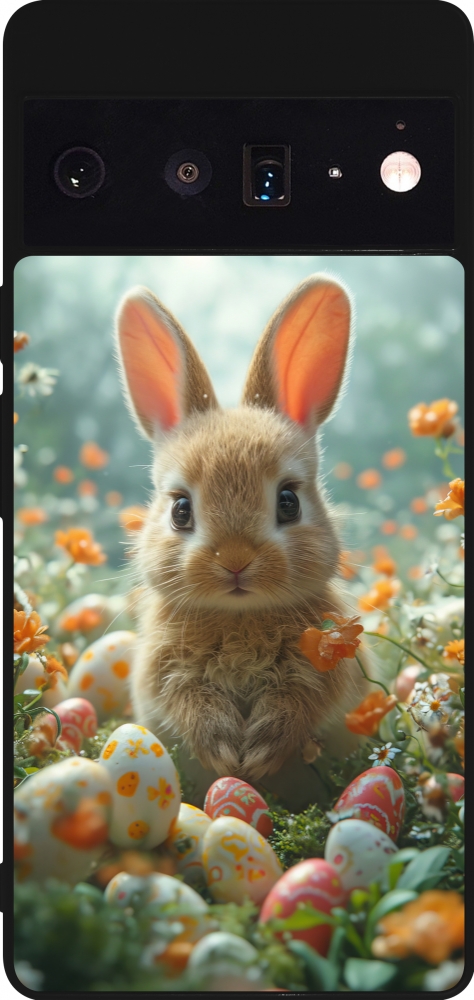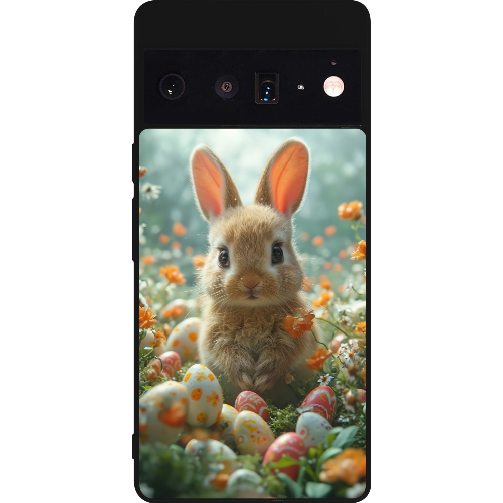 Coque Google Pixel 6 Pro - Silicone rigide noir Easter 2026 Rabbit in the garden