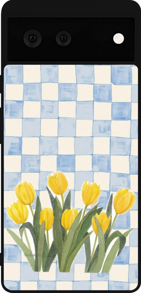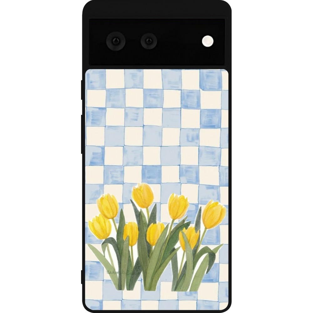 Coque Google Pixel 6 - Silicone rigide noir Blue vichy tulips Spring 2026