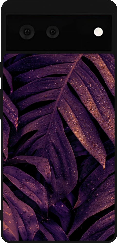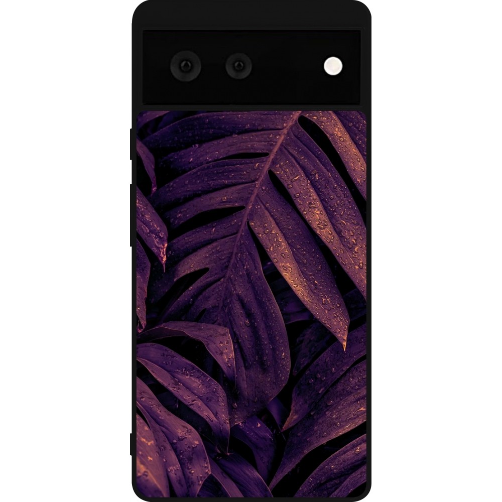 Coque Google Pixel 6 - Silicone rigide noir Purple Light Leaves