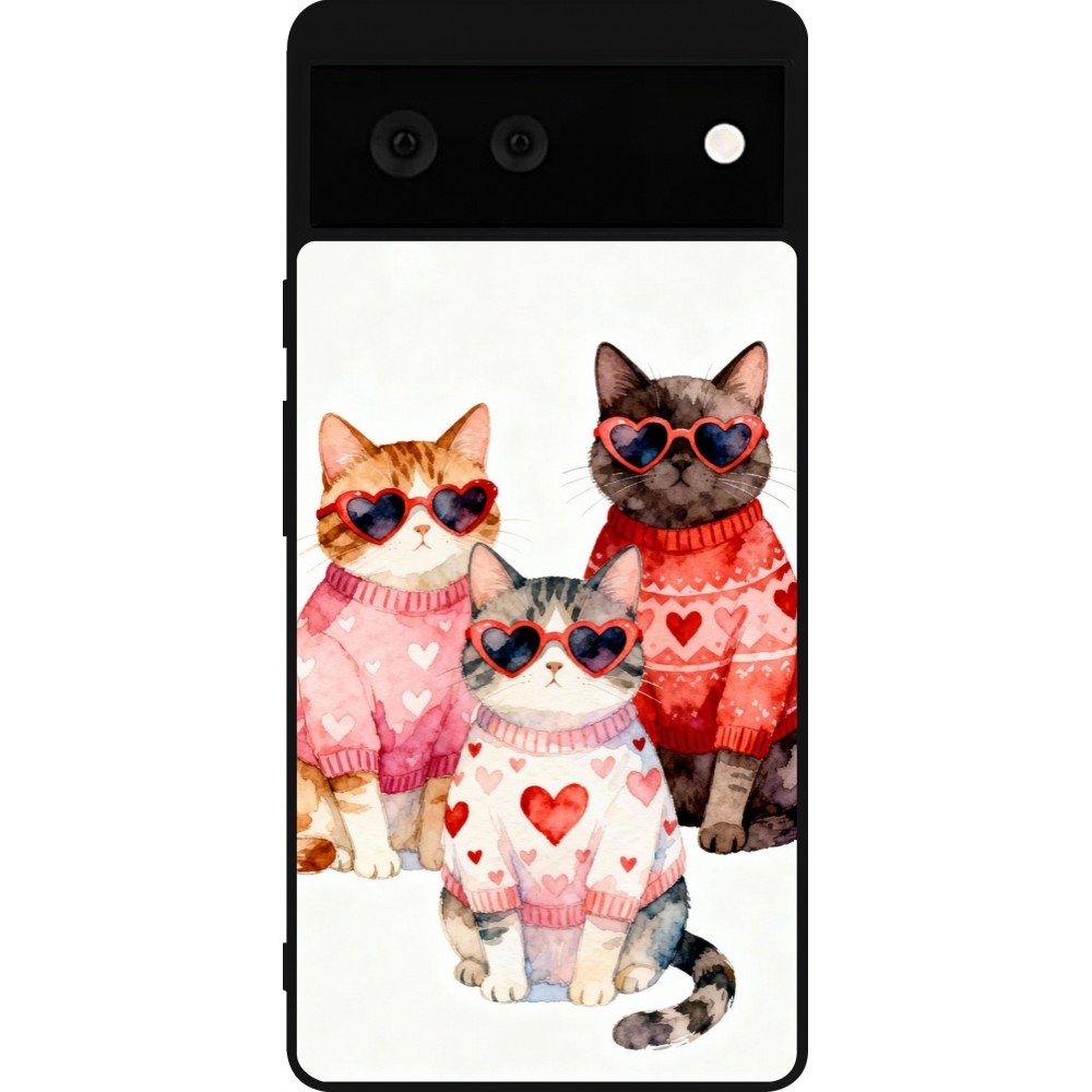 Coque Google Pixel 6 - Silicone rigide noir Saint Valentines Day 26 Cat Love