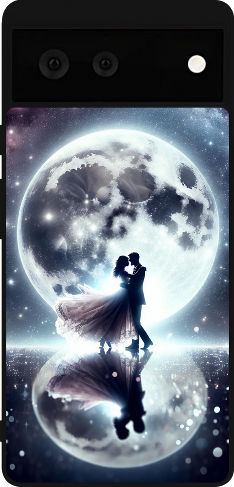 Coque Google Pixel 6 - Silicone rigide noir Valentine 2024 Love under the moon