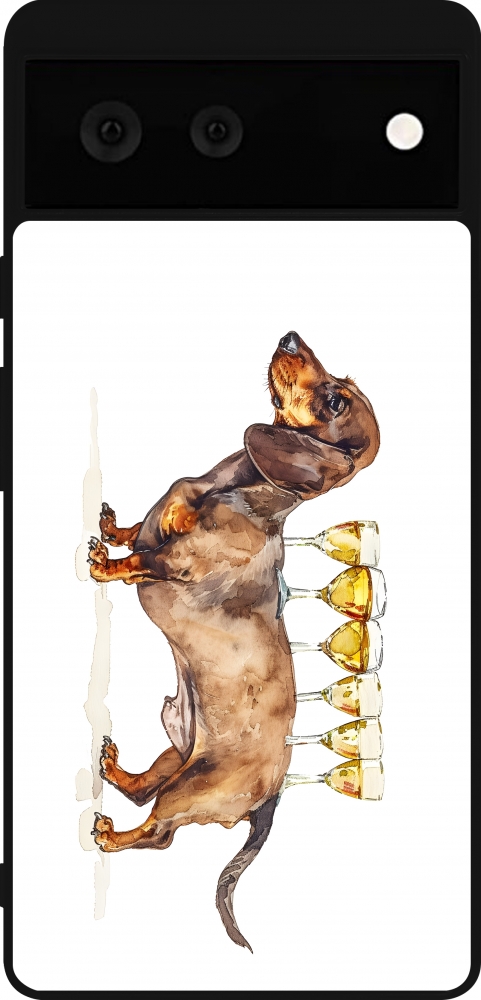 Coque Google Pixel 6 - Silicone rigide noir Wine Teckel